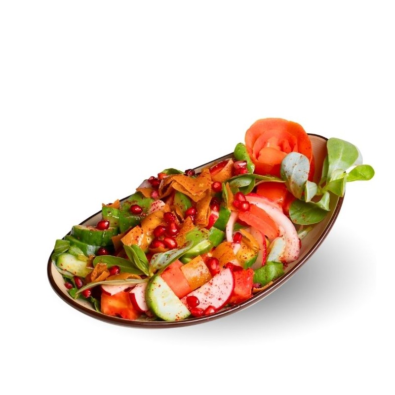 مجموعة من الخضروات مع الخبز المحمص ودبس الرمان
