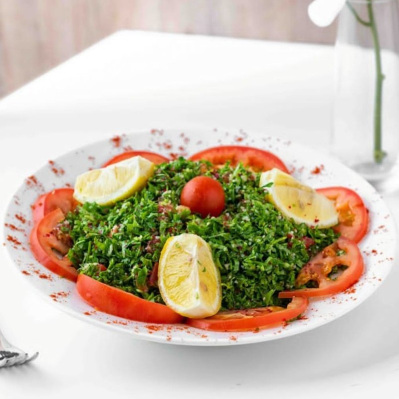 قطع الطماطم مع البقدونس والبرغار الابيض