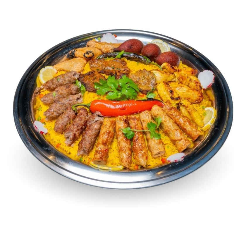 كفتة + طرب + كباب + شيش طاوق + سمبوسك جبنة + كبيبة ( تكفي ثلاث افراد )